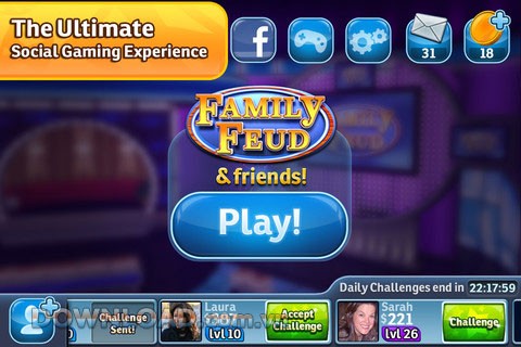 Người chơi sẽ có dịp tham gia vào những trận đấu Family Feud đầy kịch tính, giao lưu cùng bạn bè trên Facebook và cộng đồng người chơi Family Feud & Friends.