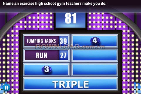 Ứng dụng được xây dựng dựa trên format của một gameshow truyền hình quen thuộc, cung cấp một kho câu hỏi khảo sát khổng lồ. Người chơi sẽ được tham gia vào các vòng chơi như ‘Fast Money’ với nhạc nền đặc trưng và bảng điểm HD trực quan.
