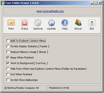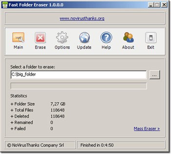 Fast Folder Eraser giúp tăng tốc đáng kể quá trình này. Điểm khác biệt quan trọng là các tệp tin sẽ bị xóa vĩnh viễn, thay vì chuyển vào Thùng Rác (Recycle Bin).