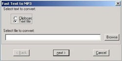 Cách sử dụng Fast Text To Mp3 để chuyển đổi văn bản sang âm thanh như thế nào? Tại giao diện chính, bạn nhấn Browse để chọn tập tin văn bản tiếng Anh (.txt), sau đó nhấn Next. Tiếp theo, chọn giọng nói nam hoặc nữ, điều chỉnh tốc độ và độ cao giọng đọc. Bạn có thể nhập nội dung kiểm tra tại mục Testing phrase rồi nhấn Test để nghe thử. Sau đó chọn định dạng âm thanh (mp3 hoặc wav), chọn nơi lưu file âm thanh và nhấn Next để hoàn thành.