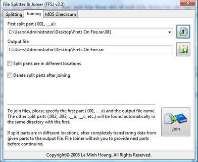 Fastest File Splitter and Joiner có thể ghép nối các phần file được tạo bởi HJ-Split.