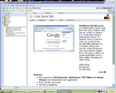 FastStone 4in1 Browser là một siêu công cụ với giao diện 3D đẹp mắt, gọn nhẹ và tích hợp bốn tính năng chính: duyệt web đa cửa sổ, chạy thử máy chủ web, FTP client và chụp ảnh màn hình.