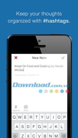 Việc tổ chức dữ liệu trở nên dễ dàng hơn nhờ khả năng sử dụng thẻ hashtag đặt ở đầu từ khóa, ví dụ như "#đọc". Người dùng hoàn toàn có thể tự tạo các danh mục theo ý muốn.