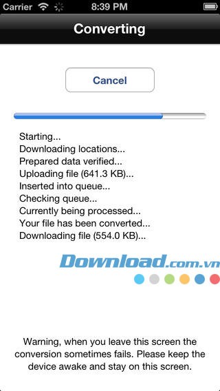 Quá trình chuyển đổi định dạng tệp tin được thực hiện thông qua việc tải tệp tin lên một dịch vụ đám mây an toàn – đây là nơi diễn ra toàn bộ quá trình chuyển đổi. Sau đó, tệp tin đã chuyển đổi sẽ được tải xuống trở lại ứng dụng File Converter Free for iOS. Nhờ vậy, người dùng có thể tiếp tục sử dụng điện thoại của mình một cách bình thường trong khi chờ đợi. Điều này giúp tiết kiệm năng lượng pin và tăng tốc độ chuyển đổi.