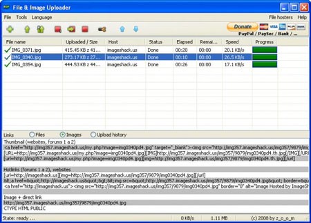 Bài viết này giới thiệu đến bạn phần mềm miễn phí File & Image Uploader, một công cụ hỗ trợ upload file và ảnh lên hơn 100 dịch vụ file hosting cùng lúc. Danh sách các File hosting được cập nhật thường xuyên, vì vậy bạn nên nâng cấp lên phiên bản mới nhất của File & Image Uploader thông qua mục Help > Update. Thông tin chi tiết và danh sách đầy đủ của từng hosting có thể được tìm thấy trong mục File hoster trên thanh công cụ.