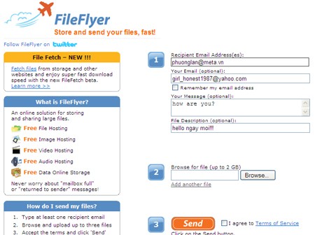 Fileflyer cung cấp khả năng chia sẻ file lên đến 2GB, không giới hạn số lượt tải xuống và đảm bảo tốc độ gửi file nhanh chóng.