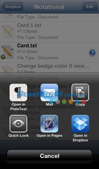 Để tải tệp tin từ Dropbox, chỉ cần chạm vào tên tệp tin trong danh sách.