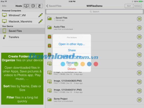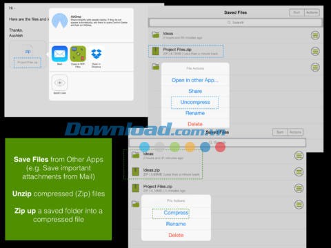 Lưu trữ tập tin từ các ứng dụng khác và sắp xếp dữ liệu trực tiếp trên thiết bị là một trong những tính năng nổi bật của ứng dụng này.