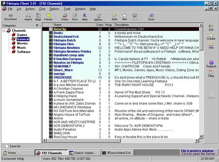 Giao diện của Filetopia được đánh giá là khá khác biệt, mang nhiều nét tương đồng với giao diện chat IRC quen thuộc.