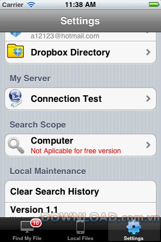 Phiên bản miễn phí của ứng dụng này hoạt động như một công cụ hỗ trợ tìm kiếm nhanh chóng, đồng thời cho phép sao chép file vào iPhone hoặc iPad.