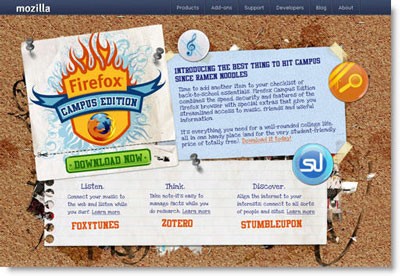 Hãng Mozilla vừa chính thức cho ra mắt Firefox Campus Edition, một phiên bản trình duyệt web được thiết kế đặc biệt nhằm đáp ứng nhu cầu của cộng đồng học sinh, sinh viên. Điểm nổi bật của trình duyệt này là sự bổ sung của một số tiện ích mở rộng (add-ons) không có mặt trong các phiên bản Firefox tiêu chuẩn.