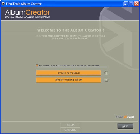Khởi động FAC, bạn sẽ thấy hộp thoại chào mừng. Tại đây, bạn có hai lựa chọn: tạo album mới hoặc chỉnh sửa album đã có trên máy tính.