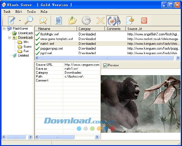 Bạn có thể xem trước file flash trước khi tải xuống.