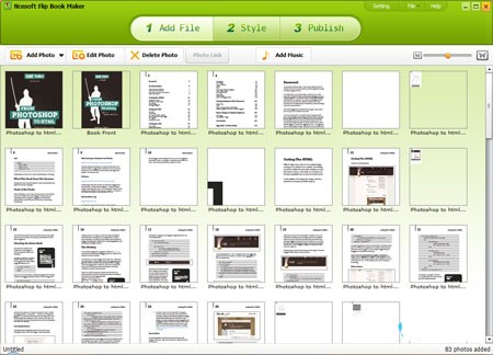 Đầu tiên, hãy nhấn vào nút Add Photo để chọn các tệp bạn muốn đưa vào eBook. Phần mềm hỗ trợ nhiều định dạng khác nhau như: PDF, Flash (FLV, SWF) và hình ảnh (JPG, BMP, PNG).