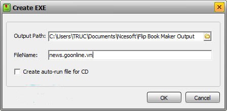 Trong hộp thoại hiện ra, hãy nhấp vào trường Output Path để chọn thư mục lưu tệp, đặt tên eBook vào ô FileName và nhấn OK.
