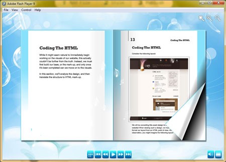 Ưu điểm của Ncesoft Flip Book Maker là tốc độ xuất bản nhanh và dung lượng eBook không quá lớn, tương đương với tệp PDF gốc. Hơn nữa, hình ảnh trong PDF vẫn được giữ nguyên chất lượng như ban đầu. Khi xem eBook, bạn có thể rê chuột vào góc phải để lật trang hoặc nhấp vào biểu tượng nút Play trên thanh điều khiển phía dưới để tự động lật trang.