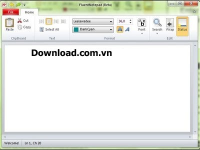 Ấn tượng ban đầu về FluentNotepad là sự tương đồng về giao diện với Word 2010, mang đến vẻ đẹp mắt và hiện đại. Các chức năng soạn thảo, định dạng văn bản như lựa chọn font chữ, kích thước chữ và tùy chỉnh văn bản đều được tích hợp tại tab Home.