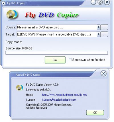 Fly DVD Copier được thiết kế với hai chức năng cốt lõi: sao chép nội dung từ đĩa DVD này sang một đĩa DVD khác, và sao chép nội dung DVD trực tiếp vào ổ cứng máy tính, đồng thời bảo toàn đầy đủ các yếu tố như lời bình luận và phụ đề.