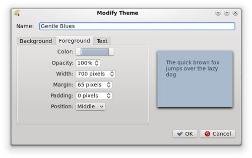 Tab Text cung cấp các tùy chọn liên quan đến font chữ và hiển thị. Chú ý đến các tính năng Transparency và Margin.