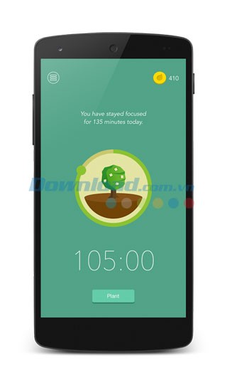 Forest cho Android giúp bạn cai nghiện smartphone và nâng cao khả năng tập trung. Mỗi khi bạn muốn tập trung, hãy gieo một hạt cây. Trong vòng 30 phút tiếp theo, hạt cây sẽ phát triển thành một cây lớn mạnh.