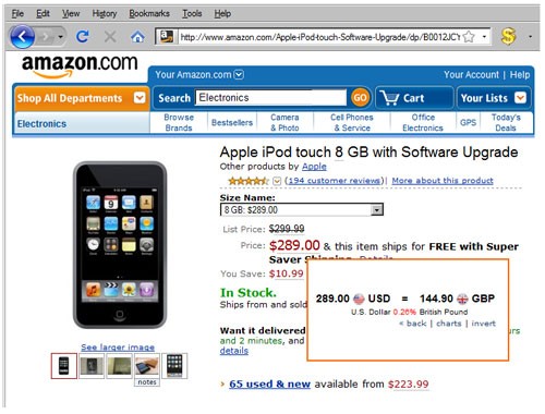 Ví dụ, nếu bạn đang xem một trang web từ một quốc gia thuộc khu vực châu Âu và có ý định mua hàng, bạn chỉ cần nhấp vào giá sản phẩm (được hiển thị bằng đồng Euro) để biết ngay giá trị tương đương bằng đô la Mỹ (USD).