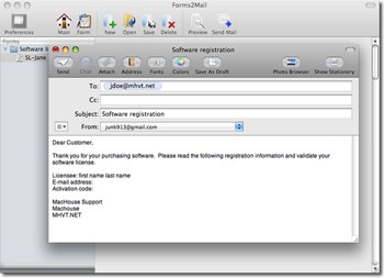 Forms2Mail sẽ tự động chuyển tiếp tin nhắn đến ứng dụng Apple Mail, nơi người dùng chỉ cần một cú click "Send" để hoàn tất quá trình.