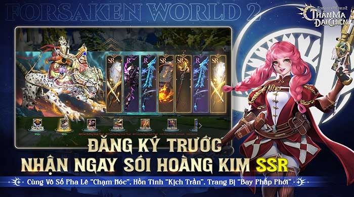 Đăng ký trước Forsaken World 2 VNG ngay hôm nay để nhận ngay thú cưỡi Sói Hoàng Kim SSR và vô vàn phần quà giá trị khác, bao gồm: Đá Triệu Hồn, Đá Cường Hóa, Lệnh Thách Đấu Boss Dã Ngoại, Lệnh Thách Đấu Boss Liên Server, Huy Chương Bạc, Pha Lê, Danh Hiệu, Hồn Tinh…