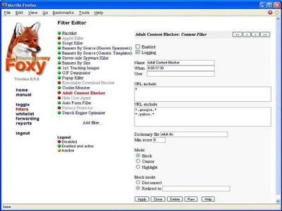 Foxy được biết đến như một trình lọc nội dung hoạt động trên giao thức HTTP. Khả năng của nó vượt xa vai trò đơn thuần của một công cụ “lọc internet”, “dọn dẹp web”, “chặn popup”, hay “loại bỏ quảng cáo”. Thậm chí, Foxy còn có thể hỗ trợ việc tự động điền biểu mẫu và ngăn chặn hiển thị nội dung không phù hợp.