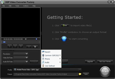 Phần mềm cũng hỗ trợ chuyển đổi từ nhiều định dạng video phổ biến sang 3GP, bao gồm AVI, MPEG, MOV, WMV, RM, RMVB…