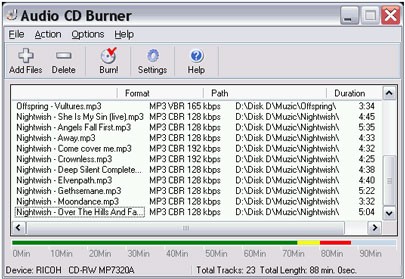 Audio CD Burner là một phần mềm tiện ích được thiết kế để tạo đĩa CD từ nhiều định dạng tập tin âm thanh khác nhau, bao gồm wav, mp3 và WMA, hoàn toàn miễn phí.