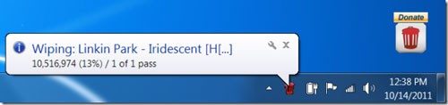 Tiến trình xóa file cũng được hiển thị trực quan thông qua biểu tượng chương trình ở khay hệ thống.