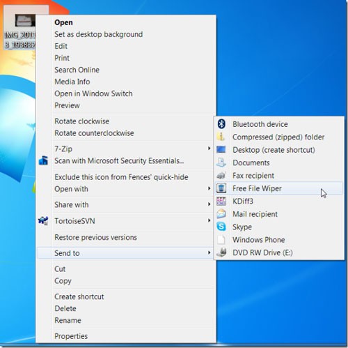Bên cạnh đó, Free File Wiper còn tích hợp khả năng xóa file trực tiếp từ menu ngữ cảnh (menu chuột phải). Bạn chỉ cần nhấp chuột phải vào file hoặc thư mục muốn xóa, sau đó chọn Send To -> Free File Wiper.