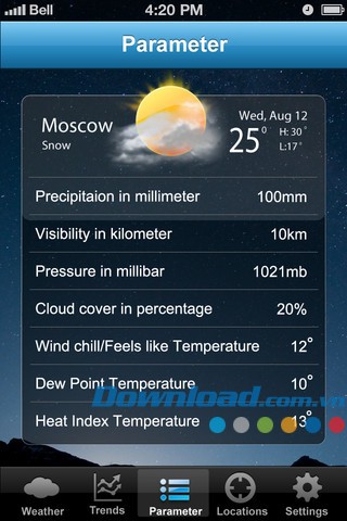 Chỉ số nhiệt độ cảm nhận (thân nhiệt) giúp người dùng đánh giá cảm giác thời tiết chính xác hơn.