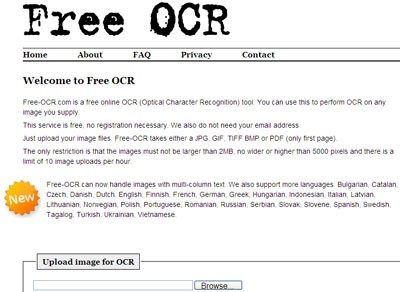 Hiện nay, có nhiều phần mềm và dịch vụ trực tuyến cho phép trích xuất văn bản từ hình ảnh. Tuy nhiên, việc tìm kiếm một công cụ hỗ trợ tiếng Việt không phải lúc nào cũng dễ dàng. Free Online OCR là một trong số ít những dịch vụ nhận dạng ký tự có hỗ trợ tiếng Việt, cùng với 28 ngôn ngữ khác như tiếng Anh, Pháp, Hà Lan, Đức, Nga, Ý, Tây Ban Nha, Thụy Điển…