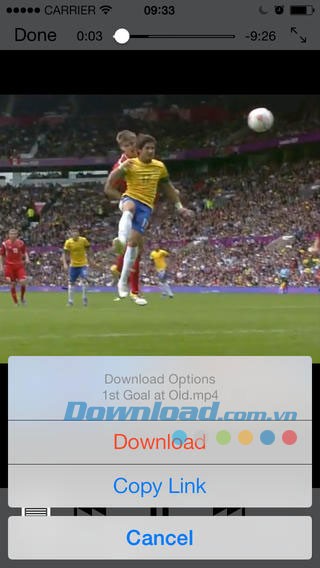 Ứng dụng có giới hạn dung lượng video tải về không? Không, ứng dụng hỗ trợ tải video có dung lượng lớn, thậm chí trên 20MB, thông qua kết nối 3G.