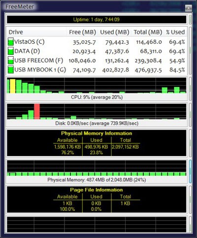 FreeMeter cho phép bạn giám sát hiệu suất của CPU, tốc độ truyền dữ liệu trên ổ đĩa, và tổng dung lượng bộ nhớ vật lý.