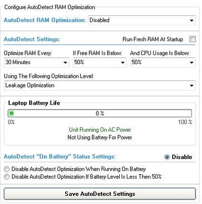 Lưu ý: Tính năng AutoDetect RAM Optimization có thể ảnh hưởng đến thời lượng pin của laptop. Do đó, không nên sử dụng tính năng này khi sử dụng laptop với nguồn pin. Nhấn Save AutoDetect Settings để lưu lại các thiết lập.