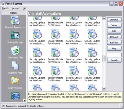 Ngoài khả năng dọn dẹp hệ thống, Fresh System còn hỗ trợ kiểm soát các chương trình tự động khởi động cùng Windows, tìm kiếm và xóa các thư mục trống, cũng như làm sạch bộ nhớ cache của trình duyệt Internet.