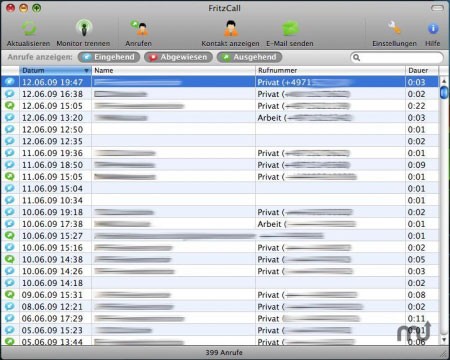 Lịch sử cuộc gọi từ Fritz!Box được trình bày rõ ràng và dễ dàng tìm kiếm trong Frizzix.