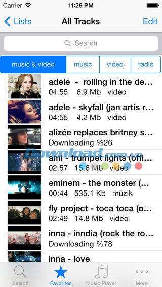 Hỗ trợ tải xuống nhiều bài nhạc và video đồng thời.