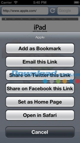 Full Screen Web Browser cho phép duyệt web một cách chính xác tương tự như trải nghiệm trên trình duyệt Safari mặc định: chạm vào liên kết, vuốt để cuộn trang, hoặc sử dụng thao tác chụm và mở để phóng to hoặc thu nhỏ.