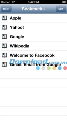 Lưu lại các trang web yêu thích để truy cập nhanh chóng. Các chức năng bổ sung, xóa, sắp xếp và chỉnh sửa bookmark được thực hiện tương tự như trên Safari.