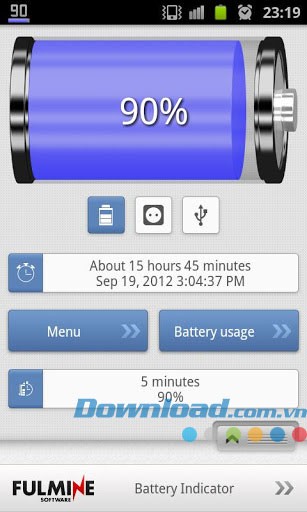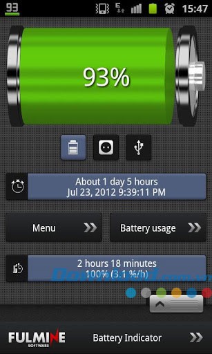Ứng dụng hiển thị thời gian ước tính còn lại để pin được sạc đầy hoặc xả hết.