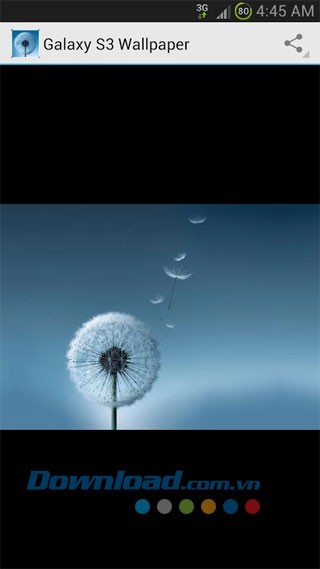 Sau khi cài đặt, đưa ứng dụng ra màn hình chính. Mở menu và chọn "Hình nền", sau đó chọn "Galaxy S3" để chọn một trong 5 hình ảnh có sẵn.