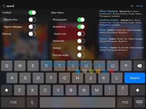 Người dùng chỉ cần cài đặt bộ lọc phù hợp với mục đích tìm kiếm, sau đó có thể duyệt ảnh nhanh chóng theo bất kỳ từ khóa nào đã nhập.