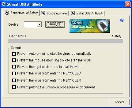 GGreat USB AntiBody là một tiện ích hỗ trợ xử lý các loại virus đã lây nhiễm trên USB hoặc thẻ nhớ. Để sử dụng, bạn cần cài đặt chương trình và sau đó khởi động bằng cách nhấp vào biểu tượng trên màn hình desktop. Tiếp theo, kết nối thiết bị cần kiểm tra vào máy tính.