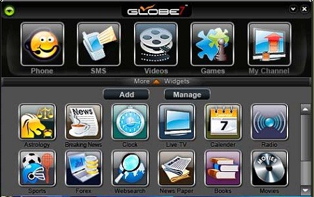 Globe7 là một bộ ứng dụng nhỏ gọn, tích hợp nhiều tiện ích đa phương tiện, đáp ứng nhu cầu kết nối và giải trí của bạn. Phần mềm bao gồm các tính năng như gọi điện thoại VoIP, nhắn tin, xem phim, chơi game, cập nhật tin tức, cùng hàng loạt các widget hữu ích khác.