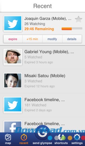 Để tiết kiệm pin, người dùng có thể cài đặt thời gian hết hạn cho Glympse.