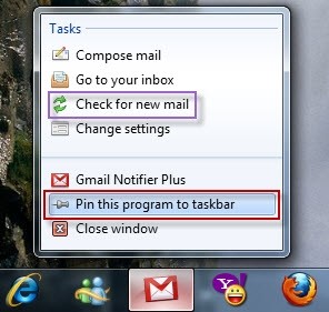Để ứng dụng tự động khởi động cùng Windows và kiểm tra thư nhanh chóng, hãy chuột phải vào biểu tượng lá thư trên thanh taskbar và chọn Pin this program to taskbar.