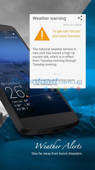 Với hơn 50 triệu lượt tải xuống từ Google Play , đây là ứng dụng thời tiết được tin dùng bởi đông đảo người dùng.